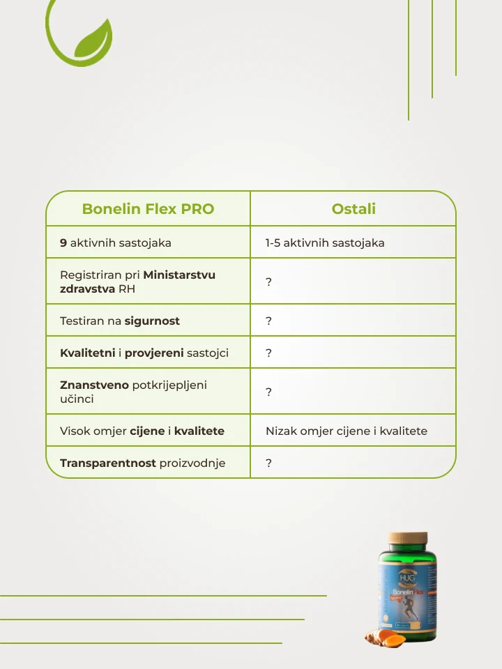 Zbog upalne bolesti crijeva imam problema sa zglobovima, a veoma sam aktivna osoba te pokusam tijelu pomoci s dodacima prehrani. Bonelin Flex ima super kombinaciju protuupalnih suplemenata koji mi pomazu s upalnom bolesti crijeva kao sto i podupiru bolje stanje mojih zglobova.