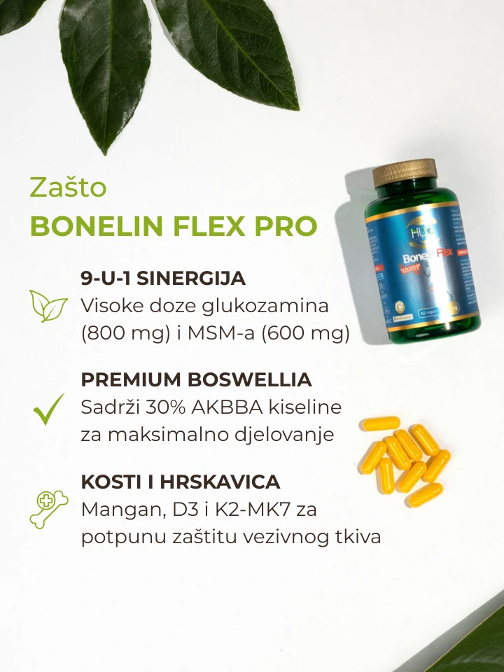 Bonelin Flex PRO® temelji se na inovativnom i kompleksnom kombinacijom od čak 9 aktivnih sastojaka koji uz samo 2 kapsule dnevno osiguravaju visoku učinkovitost.