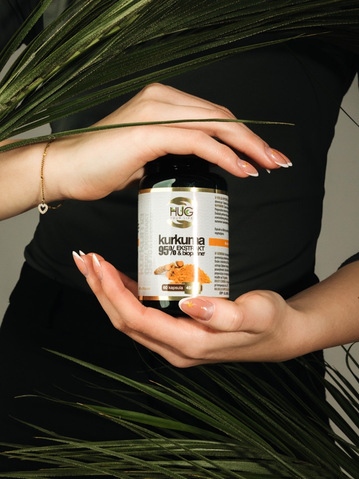 Bocica Hug Your Life Kurkuma 95% ekstrakt & BioPerine dodatka prehrani u ruci