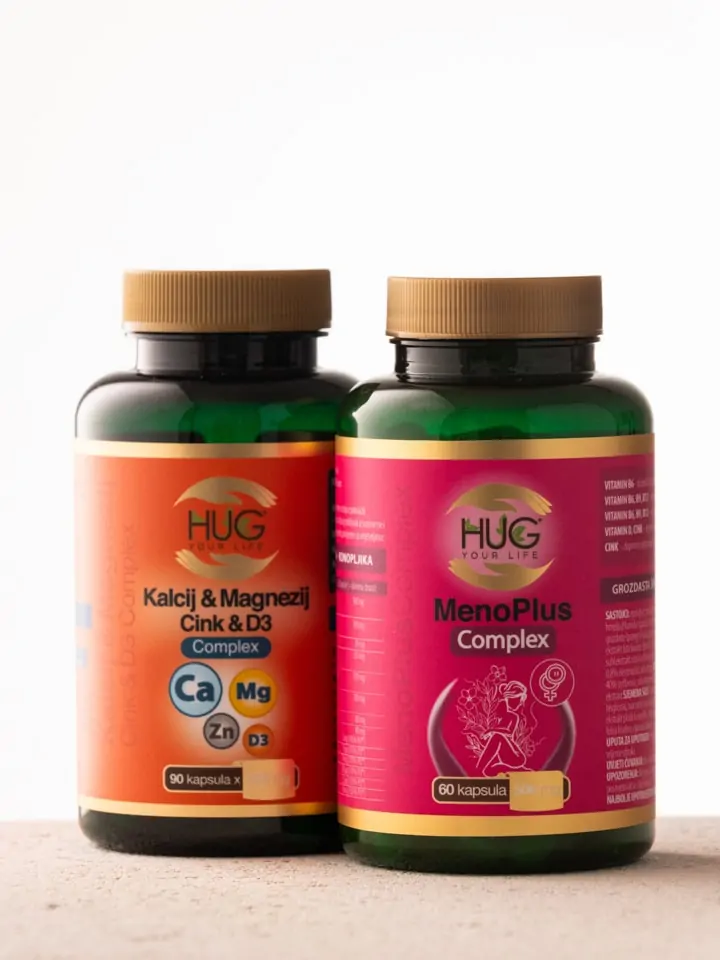 Kalcij, Magnezij, Cink i Vitamin D3 Complex doprinosi zdravlju kostiju i mišića, optimalnom metabolizmu energije te imunološkoj funkciji, dok MenoPlus Complex nudi prirodno olakšanje od simptoma menopauze pomoću biljnih sastojaka poput hmelja, crvene djeteline, soje i matičnjaka. Obogaćen vitaminima D3, E, B6, B9, B12 i mineralom cinkom, Meno Mix I nudi sveobuhvatnu podršku ženskom zdravlju u ključnoj fazi života.