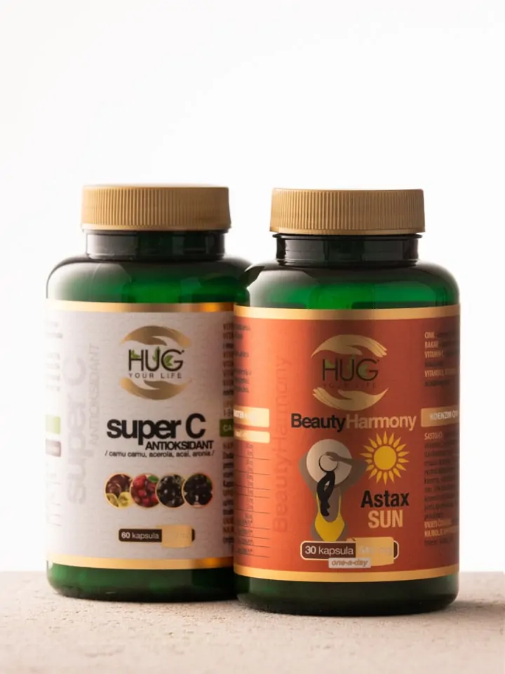 Nahranite kožu iznutra uz idealnu dozu prirodnih karotenoida i prirodnog izvora vitamina C iz čak četiri supervoća – acai bobica, camu camu, aronije i acerole. Uz čak 6 mg astaksantina i 6 mg beta karotena te uz dodatak likopena, vitamina i minerala, AstaxSUN će pomoći u pripremi i zaštiti kože od sunca, dok će supervoće iz Super C Antioksidanta zaštititi stanice od oksidativnog stresa.